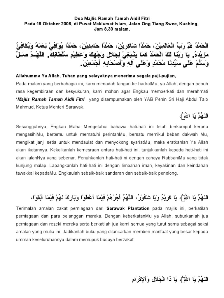 Doa Majlis Ramah Tamah Aidil Fitri Pdf