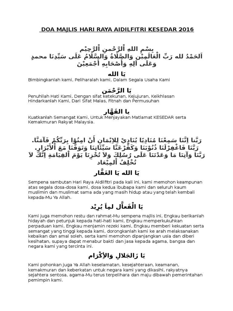 Doa Majlis Hari Raya Aidilfitri Kesedar 2016 Pdf